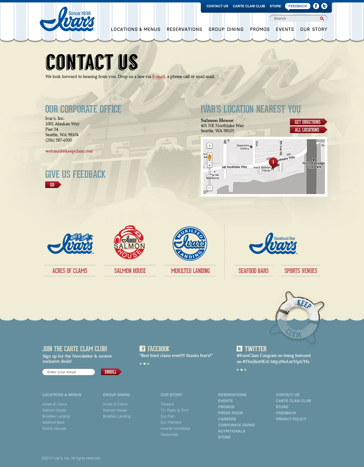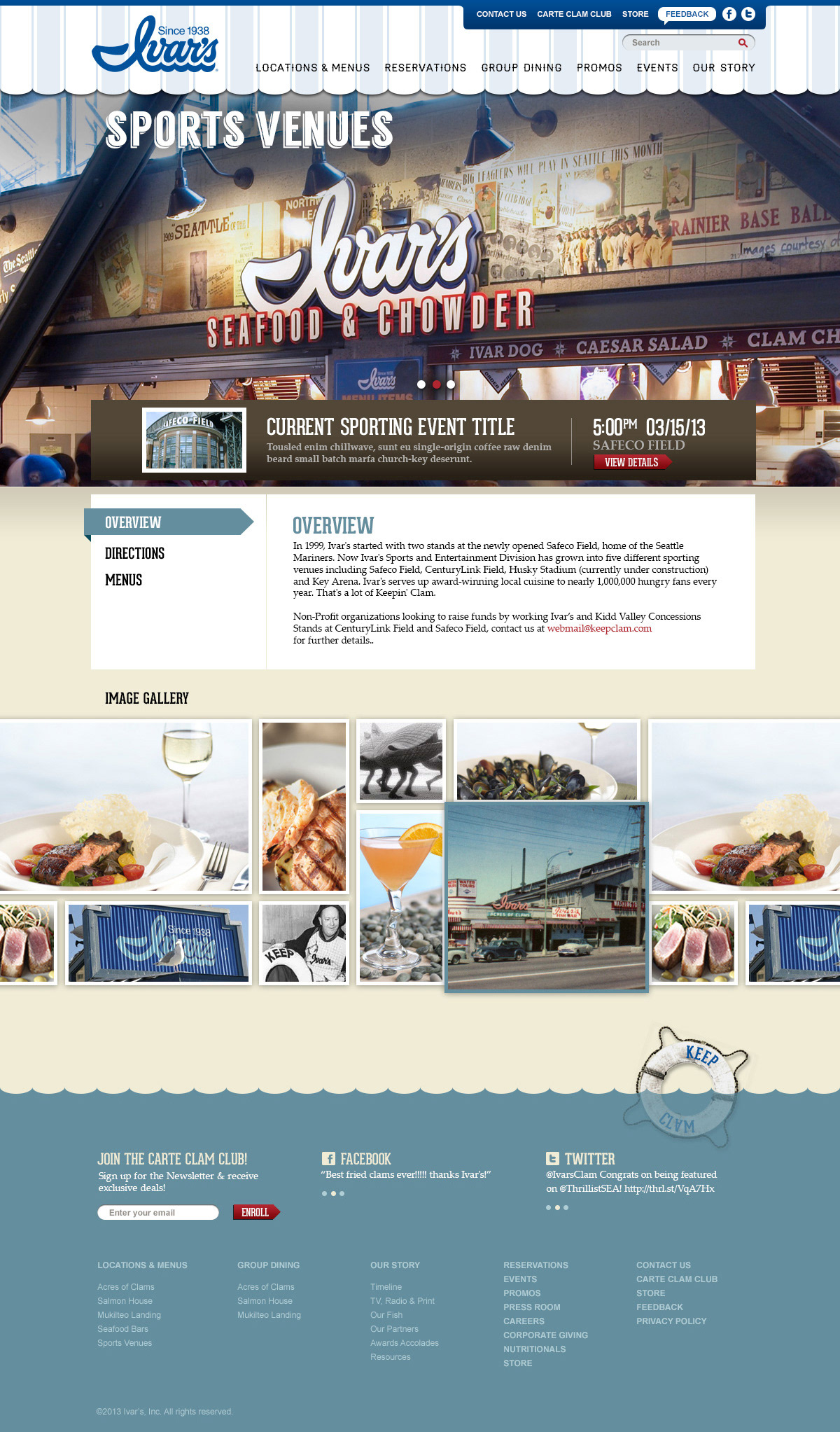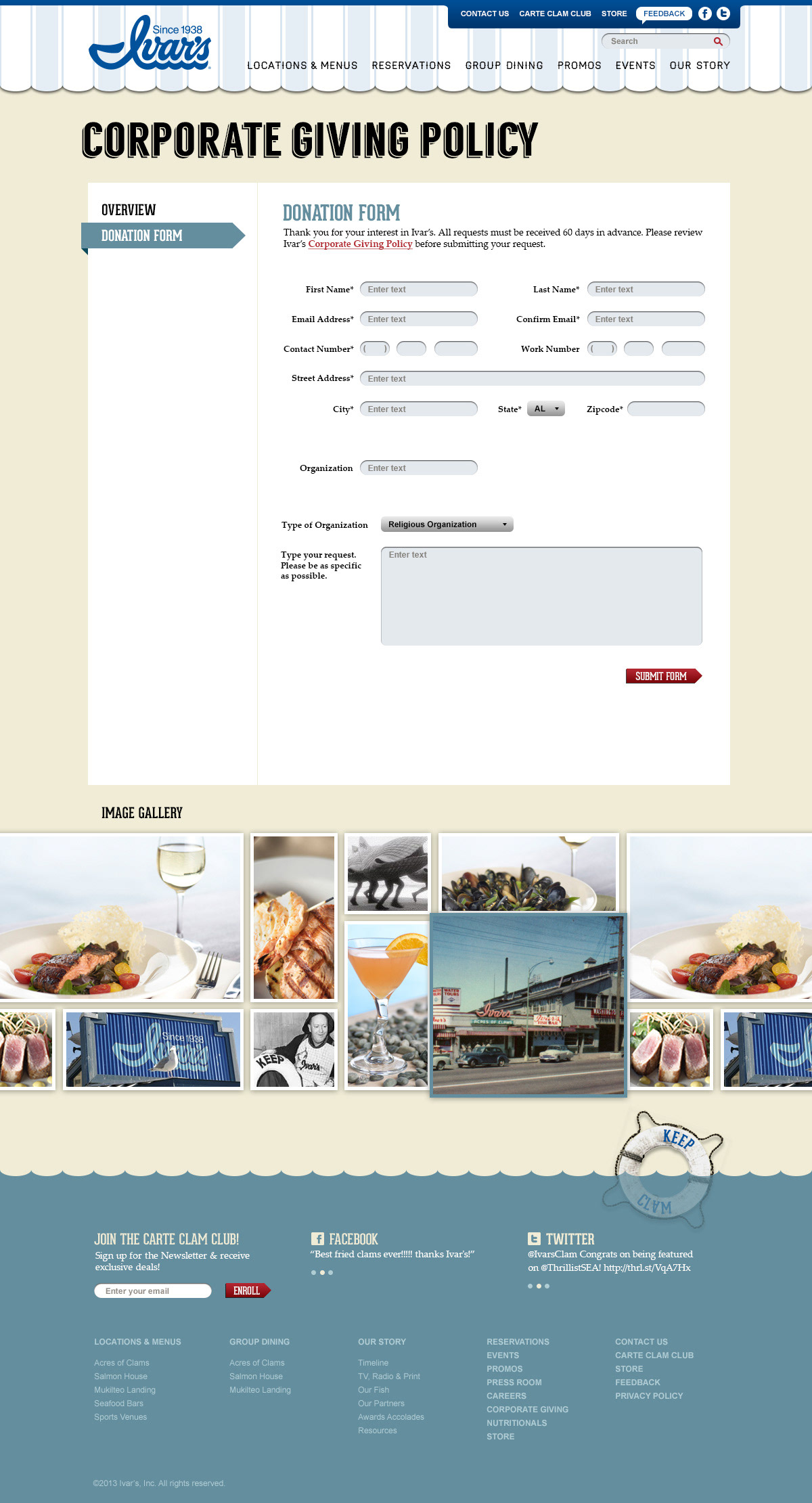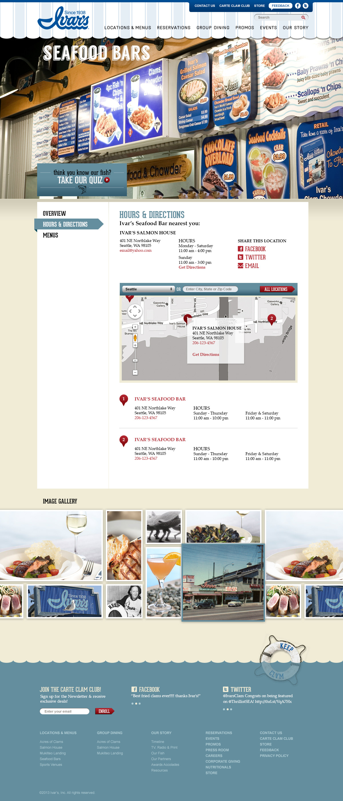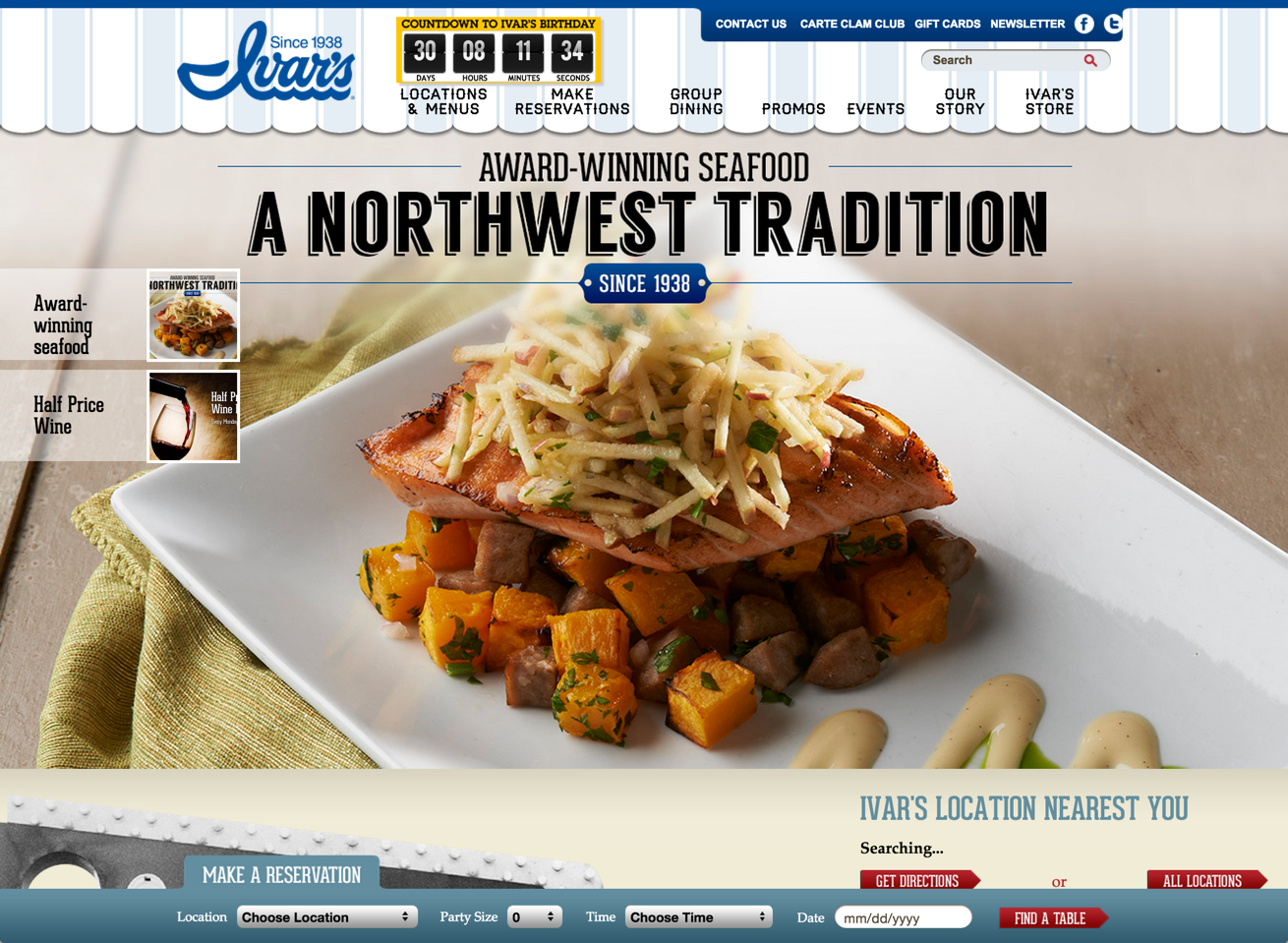 Designed, Developed and implemented the Ivar's Seafood Restaurant website. http://ivars.com