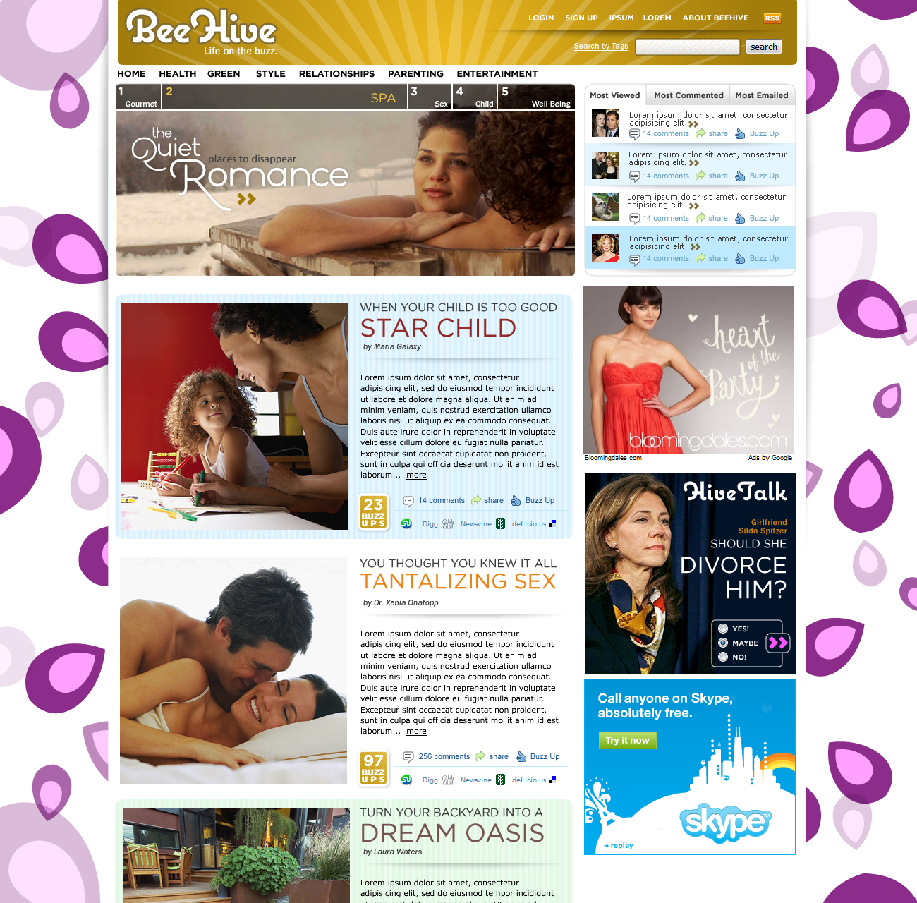 Real Networks approached us to create a new blog site that would specifically appeal to an increasing demographic profile. These are the early essence studies we did that won the project.